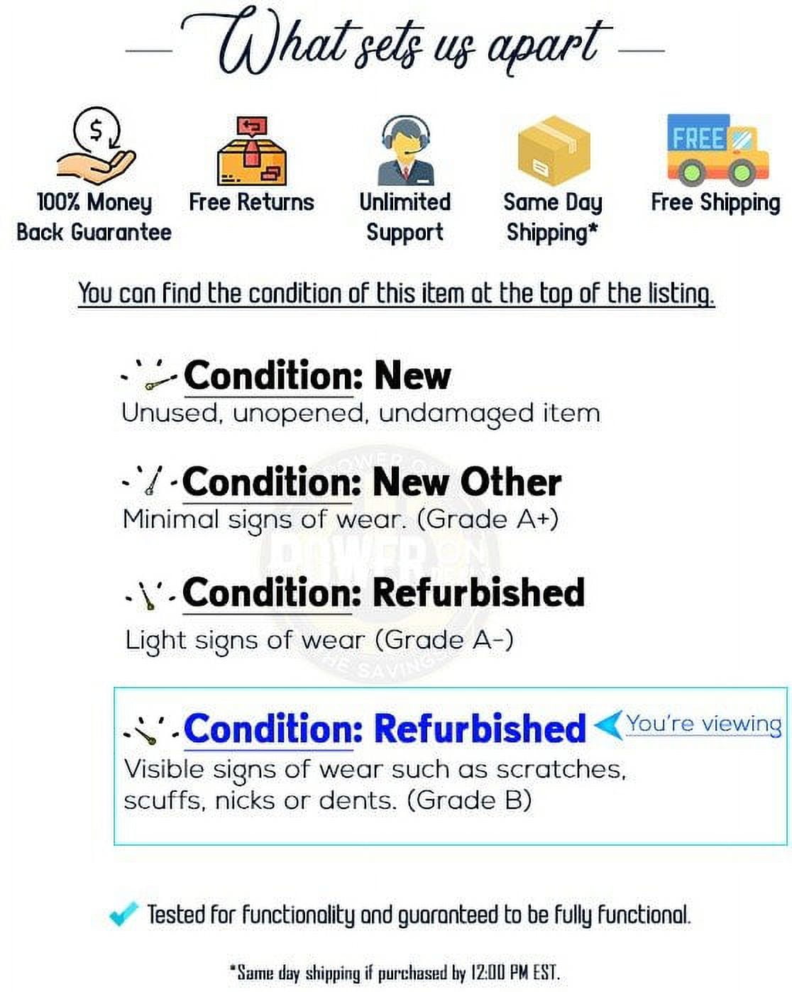 This item is in good condition, showing signs of use from normal wear. It is backed by a 1 year warranty. It is fully functional and has been professionally refurbished, inspected and cleaned to good condition. This product has been determined fully functional by our industry leading 30+ point functionality inspection. UL approved power adapter and charging cable are included. This product will not come in its original packaging; Headphones, SIM card and manual will not be included.