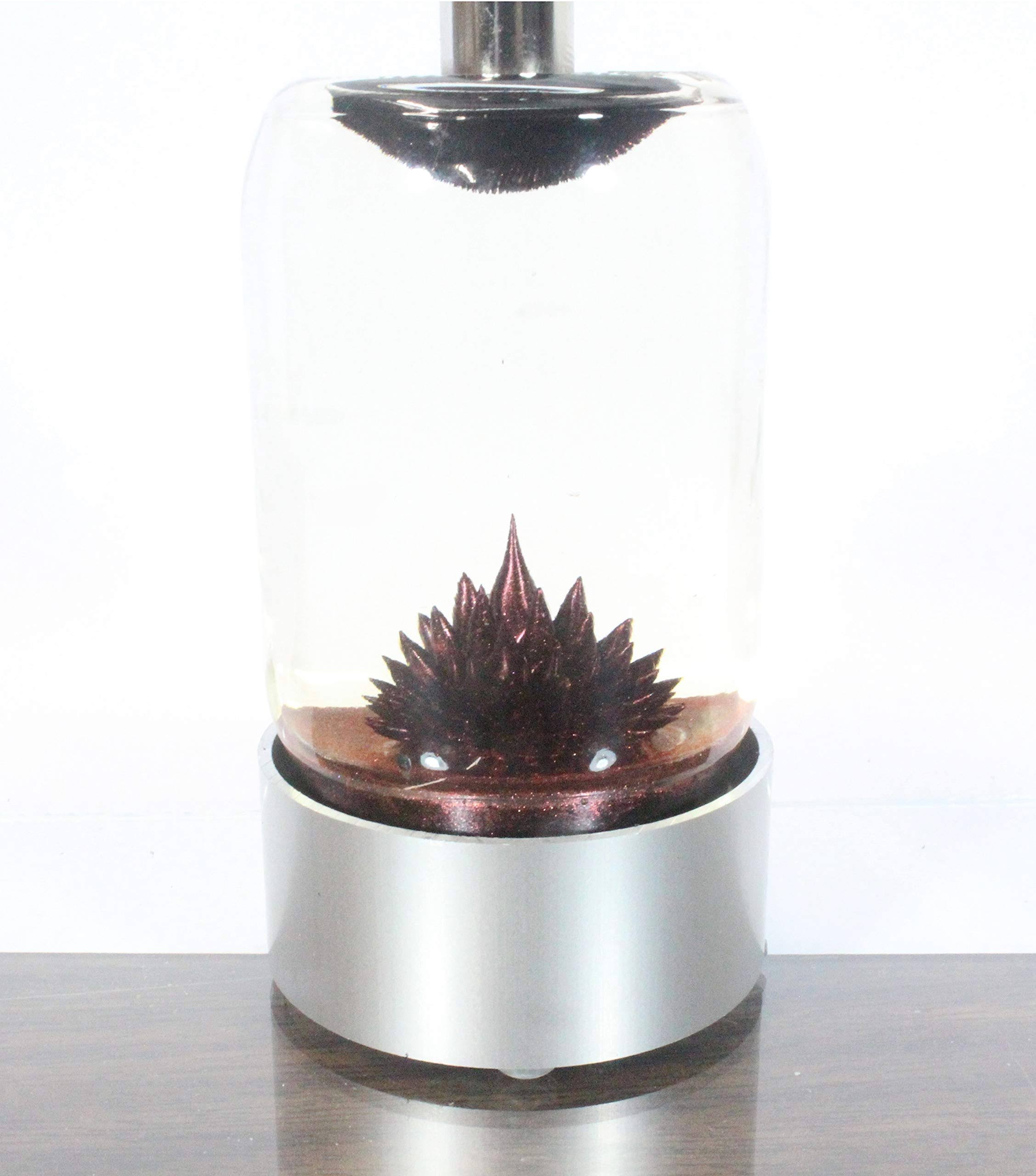 Highest quality ferrofluid available (lab synthesized by Ferrotec) won't break down in a few weeks like cheaper competitors Hand made in the US from the highest quality materials Beautiful silver anodized aluminum enclosure Bright metallic ferrofluid colors available The ULTIMATE gift for the inquisitive mind! The SPIKE Ferrofluid Display is a mesmerizing interactive kinetic sculpture containing a paramagnetic liquid called ferrofluid. It was originally created by NASA as a prototype rocket fuel, unique in that it could be fed into rocket engines using magnets in zero gravity. It contains 7ml of high quality ferrofluid (synthesized by Ferrotec) enclosed in a beautiful aerospace grade anodized aluminum and lab quality glass enclosure. It includes an extremely powerful handheld magnet (made from N52 Neodymium rare earth magnets) that you use to interact with it.