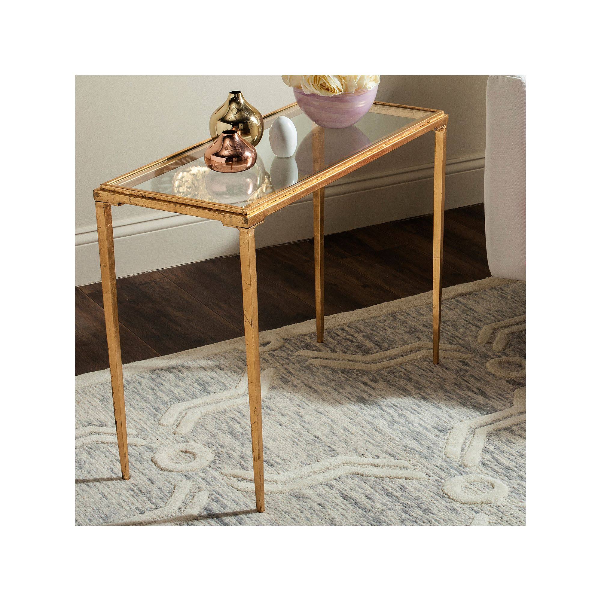 Redesign your space with the Fox End Table. With a modern style, this end table will serve as a contemporary piece that complements any room. It features a glass top, so it adds a sophisticated feel to any contemporary and modern decor. With a metal frame, it creates the feel of industrial charm in your living space. This end table features an antique gold finish, which adds some elegance to your room.