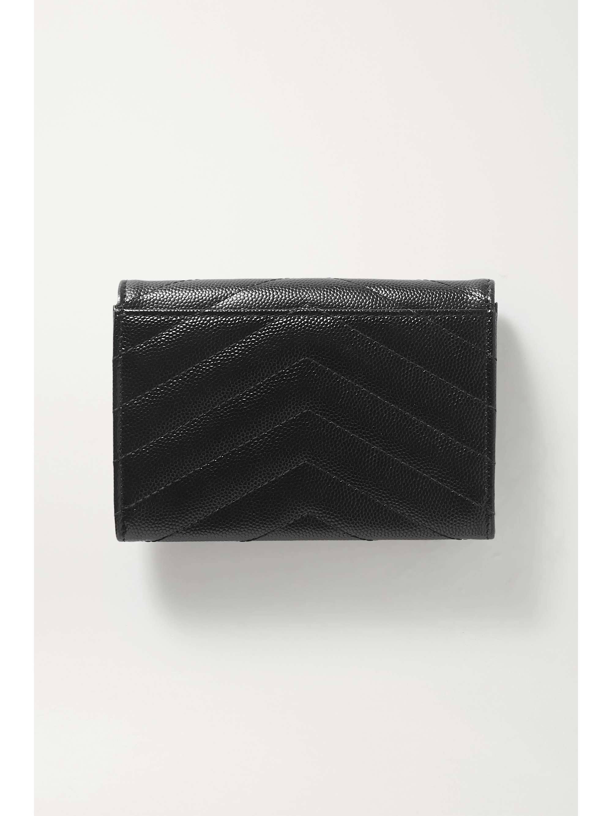 SAINT LAURENT's wallet has been made in Italy from quilted textured-leather and topped with the label's iconic 'YSL' plaque in silver. It's fitted with two cardholder slots and has space for cash or receipts.Matelasse stitching gives it an attractive appearance