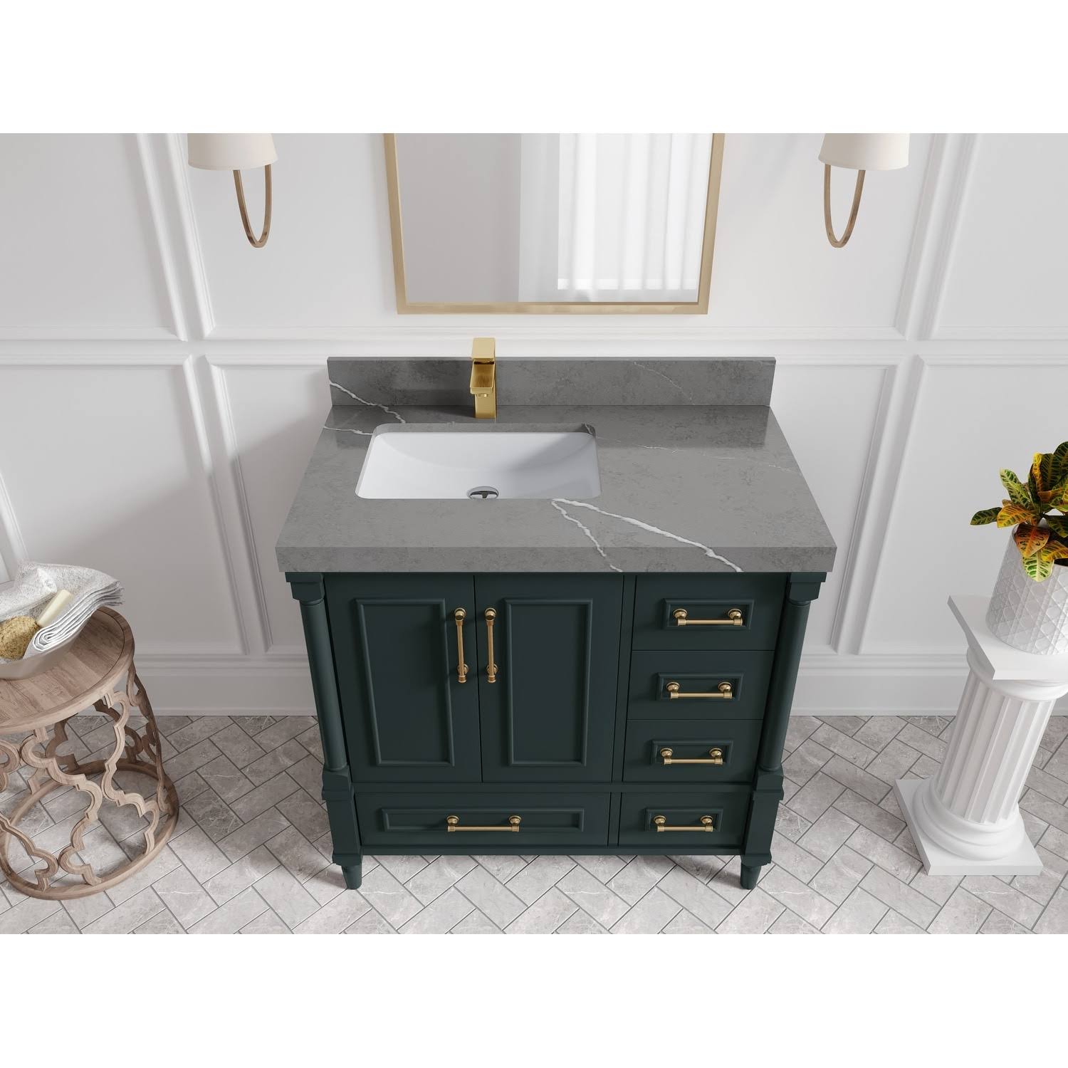 Willow Collections 36 in. W x 22 in. D Aberdeen Left Offset Sink Bathroom Vanity in Dark Green with Countertop - 2 Piatra Gray - Dark Forest Green GSR40_A0872